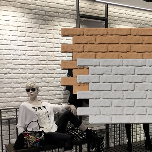 Pannello decorativo effetto finto mattone in polistirolo, adatto alla decorazione ed alla riqualificazione di pareti e supporti in ambienti privati, locali pubblici, bar, ristoranti, stand fieristici, showroom, corners.